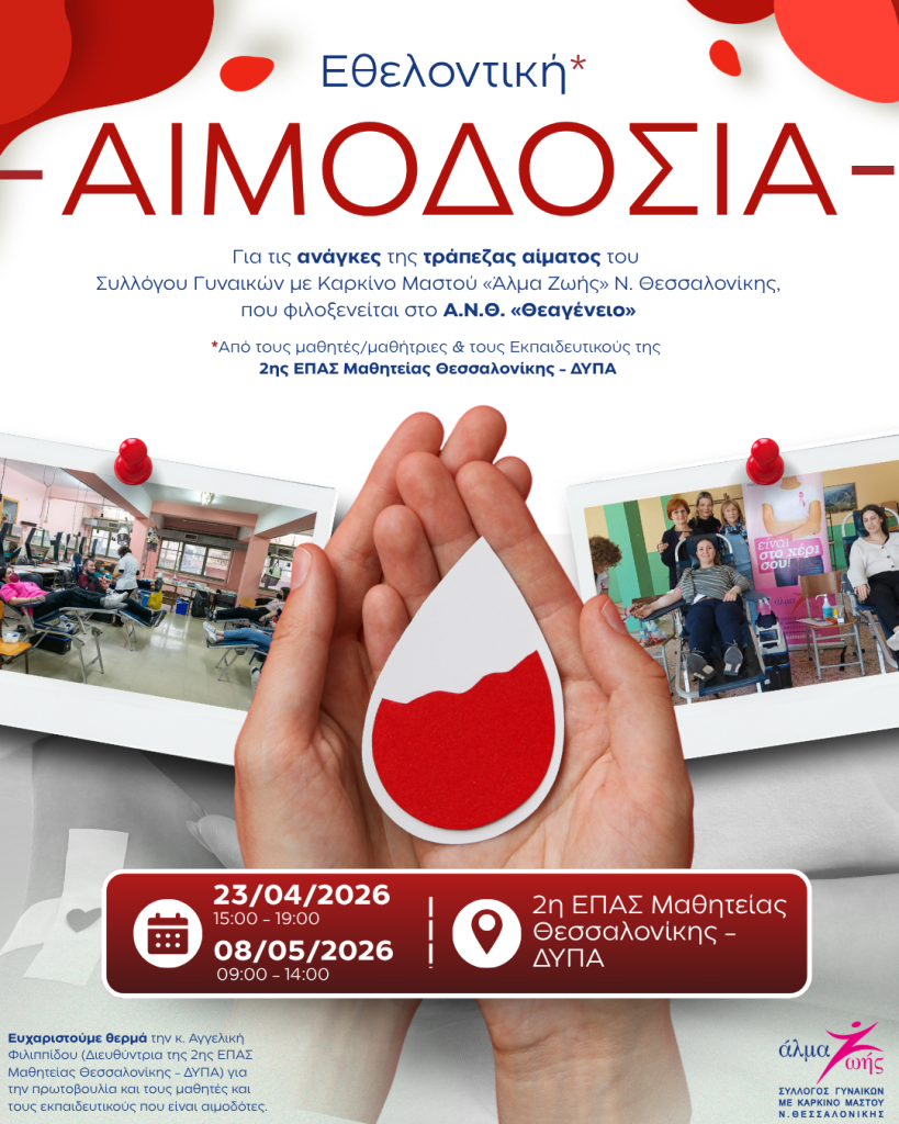 Αιμοδοσία: Μια σημαντική πράξη αγάπης και αλληλεγγύης που σώζει ζωές! Με μια όμορφη πρωτοβουλία η 2η ΕΠΑΣ Μαθητείας Θεσσαλονίκης -…