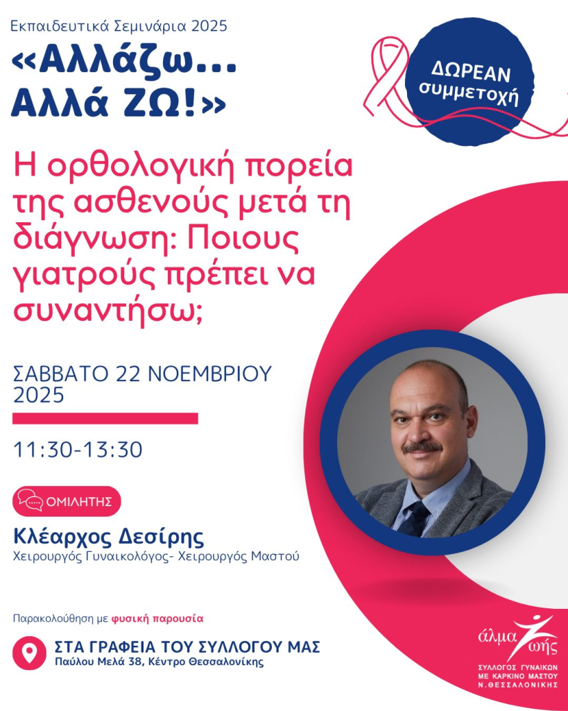 Ομιλητής: κ. Δεσίρης Κλέαρχος, Χειρουργός Ειδικός σε Παθήσεις Μαστού.